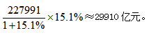 現(xiàn)期值為2014年全部工業(yè)增加值227991億元,未給出2014年相對2012年的增長率,但有2014年同比增長7.0%,2013年增長7.6%,可利用隔年增長率的公式求出,即7.0%+7.6%+7.0%×7.6%≈15.1%,再代入增長量公式得
