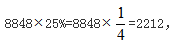 首先我們來看一道簡單的計算列式8848×25%,直接相乘計算量較大,但是我們會發(fā)現(xiàn)25%正好可以轉(zhuǎn)化為