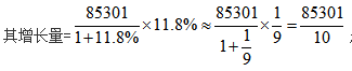 (也就是現(xiàn)期比重)材料中也已給出為80.6%,整體的增長率同樣也在材料中直接給出為6.7%,因此代入以上數(shù)據(jù)可得: