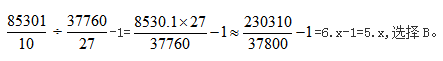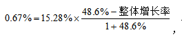 發(fā)現(xiàn)整個式子中只有整體的增長率是未知的,而這正是題目讓我們求解的量。接下來,我們?nèi)匀豢梢詫⑦x項代入進行排除。很明顯C和D選項代入后計算結(jié)果為負數(shù),排除;B選項代入后等號左側(cè)計算結(jié)果一定小于15.28%×(48.6%-47.6%)=0.1528%,排除。故選A。