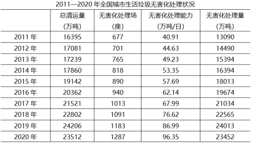 100.關(guān)于全國城市生活垃圾清運和無害化處理狀況,能夠從上述資料中推出的是:( )