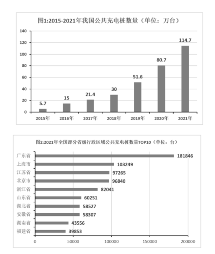B、2021年我國公共充電樁數(shù)量超過5萬臺的省級行政區(qū)域有7個