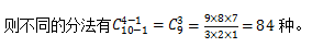 例1:共有10本完全相同的書分到4個(gè)班里,每個(gè)班至少要分到一本書,共有幾種不同分法?( )