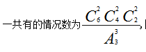 例2:將紅、橙、黃、綠、藍(lán)、白6顆不同顏色的玻璃球,平均分成3堆,一共有幾種情況?( )