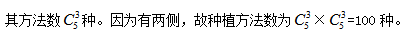 例3:把12棵同樣的松樹和6棵同樣的柏樹種植在道路兩側(cè),每側(cè)種植9棵,要求每側(cè)的柏樹數(shù)量相等且不相鄰,且道路起點(diǎn)和終點(diǎn)處兩側(cè)種植的都必須是松樹。問有多少種不同的種植方法?( )