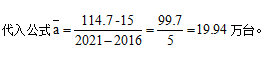 (末期值為2021年114.7萬(wàn)臺(tái),初期值為2016年15萬(wàn)臺(tái),n為增長(zhǎng)次數(shù)),代入公式