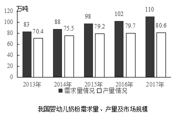 若保持2014-2017年的年均增長(zhǎng)量不變,預(yù)計(jì)到2022年我國(guó)嬰幼兒奶粉需求量將達(dá)到多少萬(wàn)噸?( )