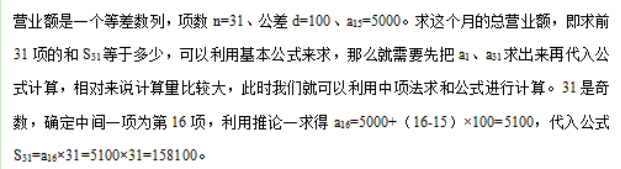 (當n為奇數(shù)時)求解,16日的營業(yè)額為中項,依題意16日營業(yè)額為5000+100=5100元,
