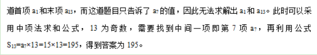 【答案】195【解析】這道題要求的是前13項和S3。如果利用基本的求和公式,需要知
