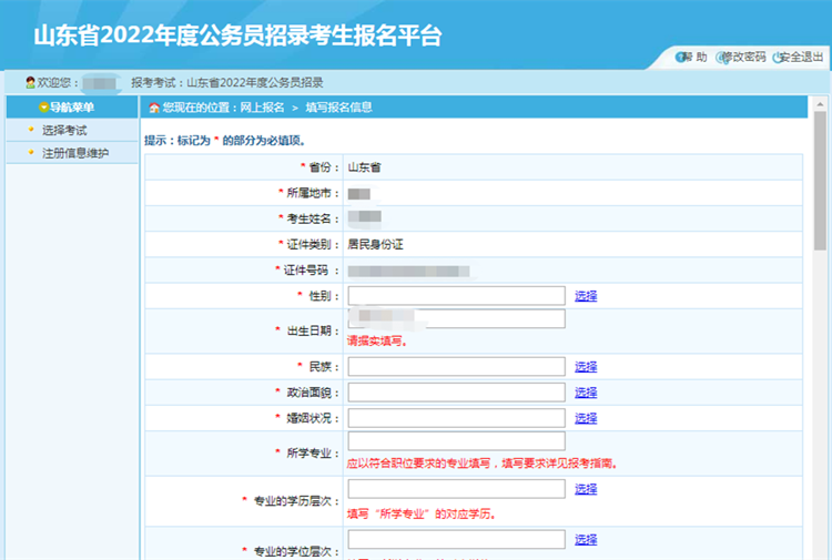 點擊【接受】按鈕,進入填寫報名信息頁面:
