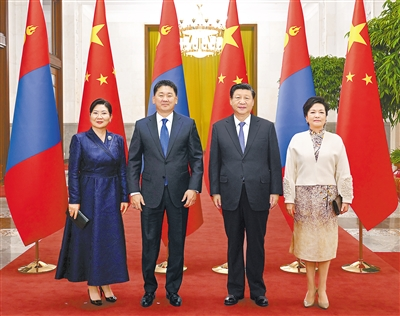雙方發(fā)表《中華人民共和國和蒙古國關(guān)于新時代推進全面戰(zhàn)略伙伴關(guān)系的聯(lián)合聲明》,一致同意攜手推進現(xiàn)代化建設(shè),朝著共建和平共處、守望相助、合作共贏的兩國命運共同體方向作出努力。