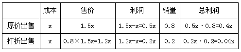 例題:服裝店買進一批童裝,按每套獲利50%定價賣出這批童裝的80%后,按定價的八折將剩下的童裝全部賣出,總利潤比預(yù)期減少了390元。問服裝店買進這批童裝花了多少元?( )