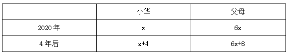 例3:2020年小華的父母年齡之和是小華的6倍,四年后小華的父母年齡之和是小華的5倍。已知小華的父親比他的母親大2歲,那么2020年小華父親多少歲?( )