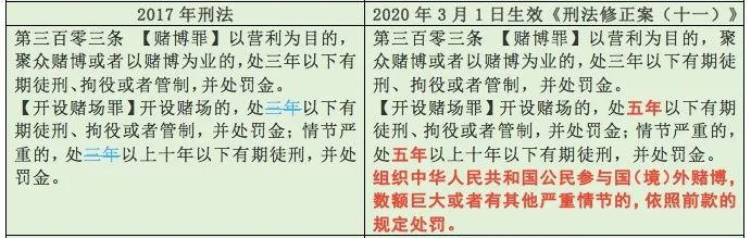 刑法修正案11前后開設(shè)賭場(chǎng)罪對(duì)比