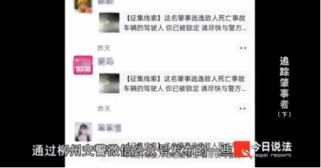 為盡快查獲第二輛肇事車輛,警方借助無人機來篩選逃逸路線,還通過“柳州交警”微信公眾號向社會發(fā)布線索征集通告。