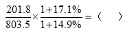 【解析】已知材料描述的是兩個指標(biāo)——北京商品住宅銷售面積和銷售額——關(guān)于2018年的數(shù)據(jù),以及與2017年相比較增長不帶單位的率。問題求2017年北京商品房住宅均價,則為求基期平均數(shù),故根據(jù)所給數(shù)據(jù)可列式為