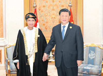 習(xí)近平指出,中阿友誼歷史悠久,當(dāng)年的海上絲綢之路把兩國聯(lián)系在一起。新形勢下,中方愿同阿方鞏固互信,深化友好合作,推動(dòng)中阿戰(zhàn)略伙伴關(guān)系取得新進(jìn)展。希望阿曼繼續(xù)積極參與中阿集體合作。祝賀阿曼即將擔(dān)任下屆海合會(huì)輪值主席國,愿同阿曼一道,推動(dòng)中阿和中海關(guān)系取得新進(jìn)展。
