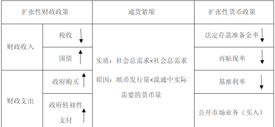 以上就是在通貨緊縮下,我國采取的擴(kuò)張性財政政策和擴(kuò)張性貨幣政策,通貨膨脹則相反,故不再贅述。