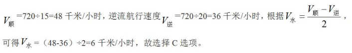 【答案】C【解析】題干表述的是船在水中行駛,屬于流水行船。題目已知A、B的距離,順流而下用的時間,則根據(jù)行程基本公式,可得輪船順?biāo)俣龋?/span>