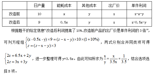 【答案】B【解析】企業(yè)改造前、改造后產(chǎn)品的部分量發(fā)生變化,結(jié)合日產(chǎn)量以百分?jǐn)?shù)的形式呈現(xiàn),可特值改造前日產(chǎn)量為10,梳理題意列表如下: