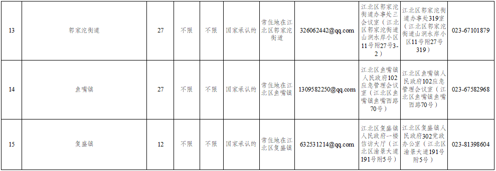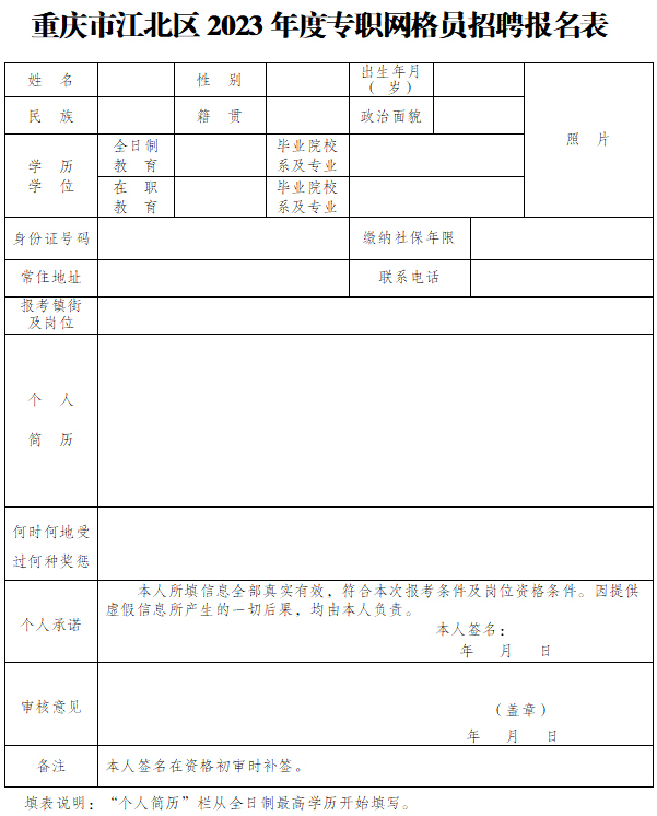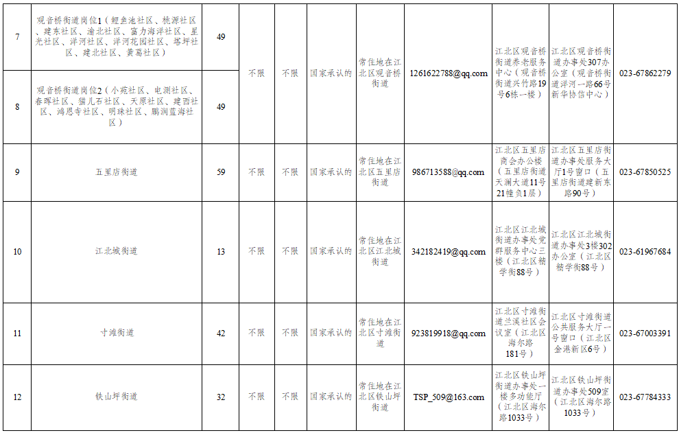 8. 根據(jù)專職網(wǎng)格員工作性質(zhì),報(bào)考人員常住地原則上在報(bào)考崗位所在鎮(zhèn)街范圍內(nèi),具體要求見《重慶市江北區(qū)2023年專職網(wǎng)格員招聘職位表》。