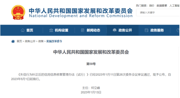 第三十二條 本辦法自2023年5月1日起施行。涉及信用平臺(tái)網(wǎng)站的信用信息修復(fù)相關(guān)規(guī)定,凡與本辦法不一致的停止執(zhí)行。