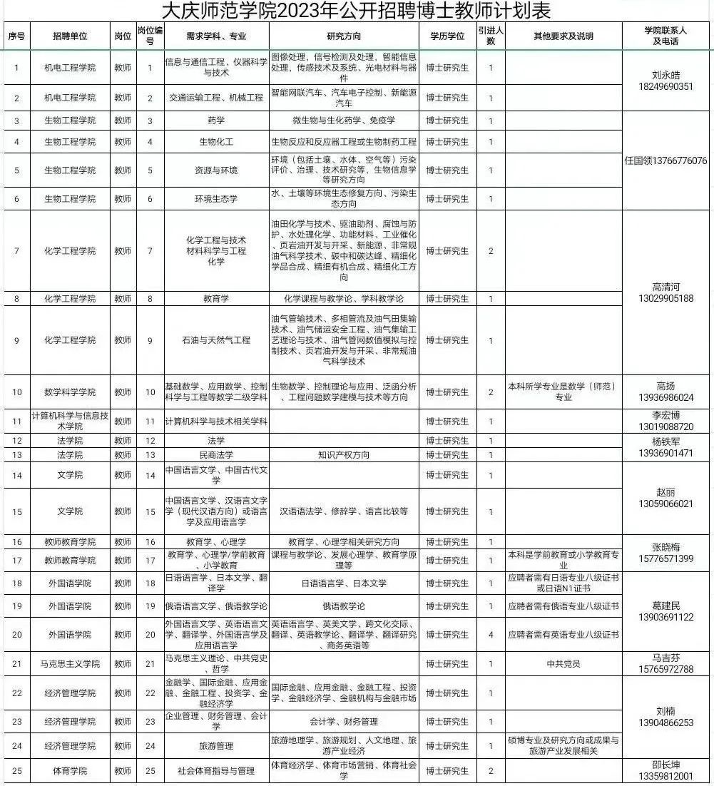 詳見《大慶師范學(xué)院2023年公開招聘博士教師計(jì)劃表》(附件1)。