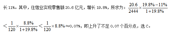 問題:與上年相比,2017年常州市住宿業(yè)零售額占社會消費(fèi)品零售總額的比重約( )