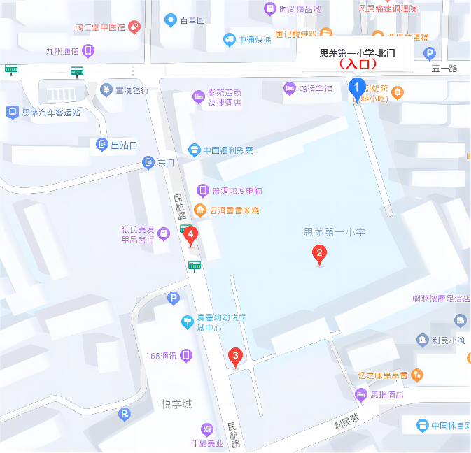 3.思茅第一小學(xué),地址:普洱市思茅區(qū)五一路8號