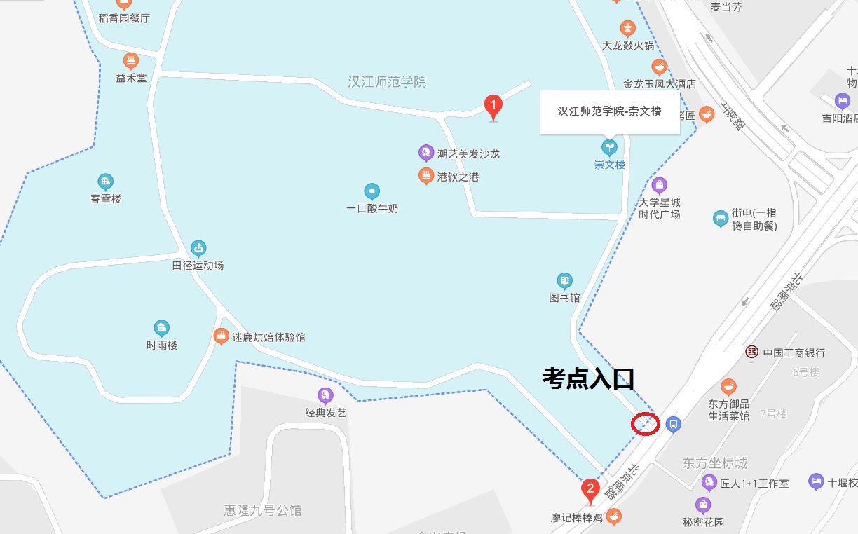 考點入口:北京南路漢江師范學院門口(十堰東方坐標城正對面)。