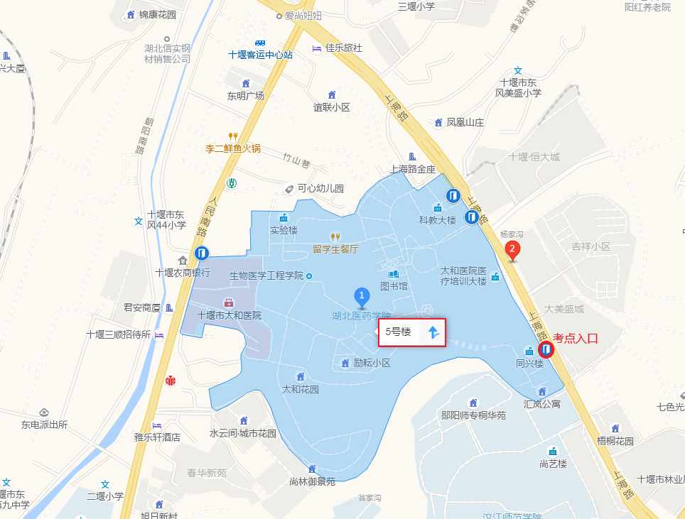 考點入口:上海路湖北醫(yī)藥學院藥護學院校門口(十堰大美盛城對面,湖北日報社分社旁)。