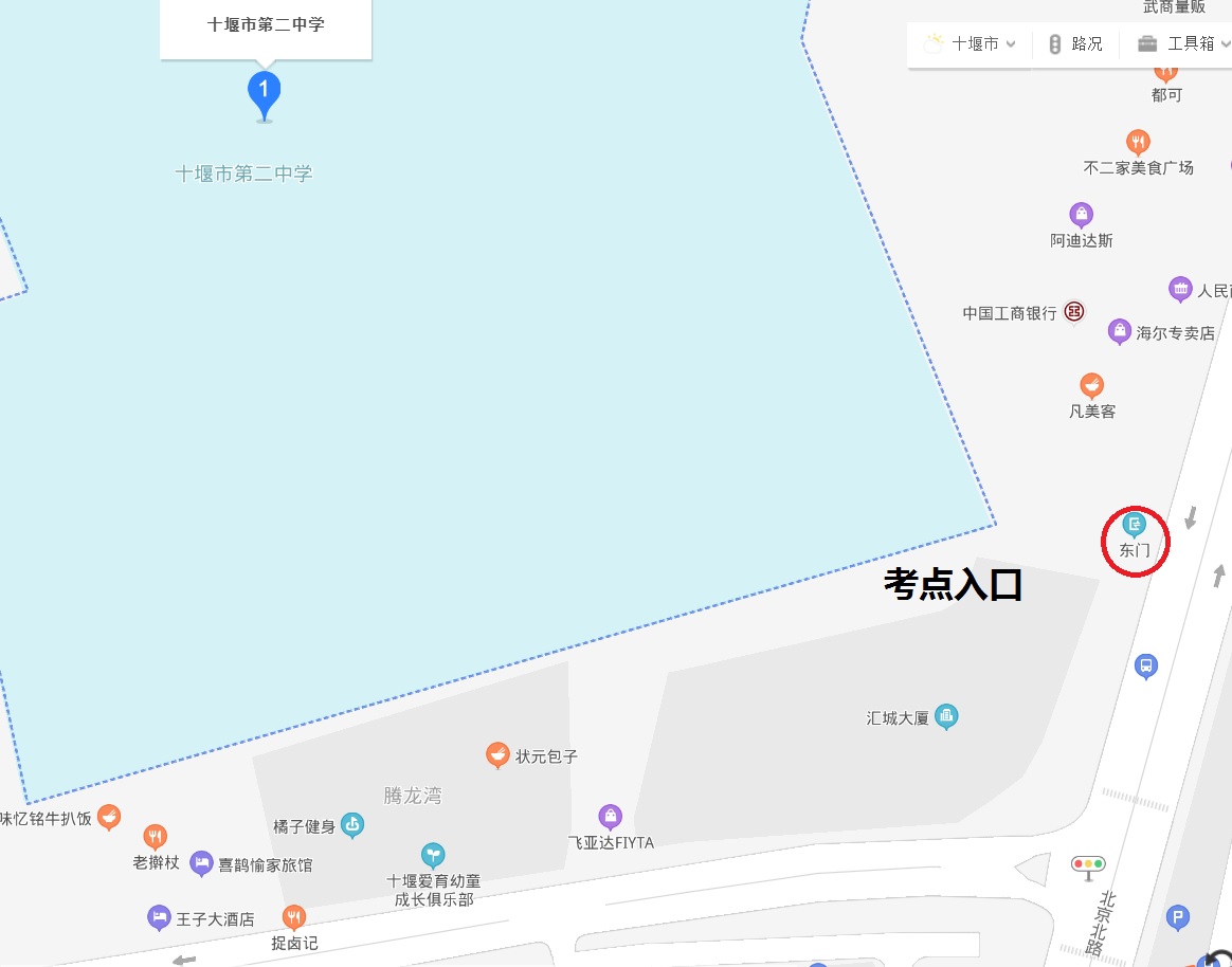 考點入口:北京南路漢江師范學院門口(十堰東方坐標城正對面);
