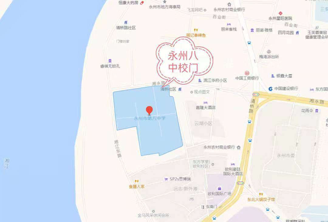 6.永州市第八中學(xué)考點(diǎn)(冷水灘區(qū)湘永路2號(hào),嘉隆大酒店旁——湘永路永州八中大門(mén)進(jìn)入考點(diǎn)),周?chē)?jīng)停公交車(chē)線路:8路、12路、14路、20路、24路等)