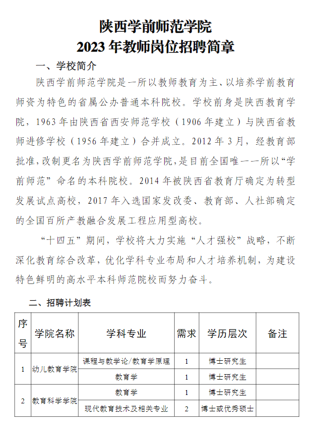 2023年陜西學(xué)前師范學(xué)院教師崗位招聘簡章