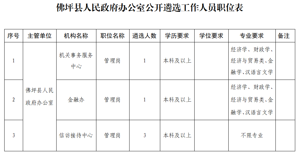 佛坪縣人民政府辦公室公開遴選工作人員公告