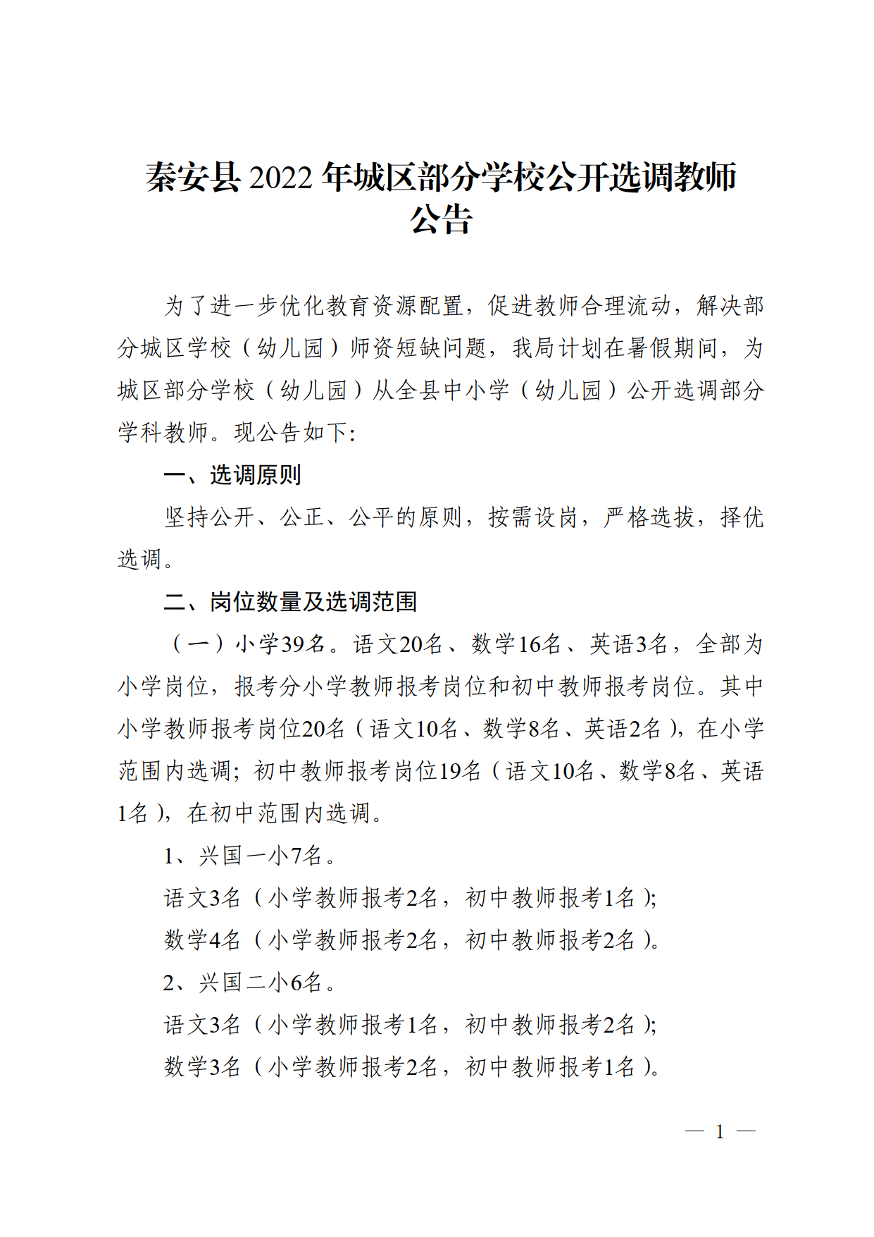 秦安縣2022年城區(qū)部分學(xué)校公開選調(diào)教師公告