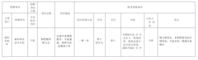 【招聘啟事】襄陽(yáng)職業(yè)技術(shù)學(xué)院高層次人才引進(jìn)