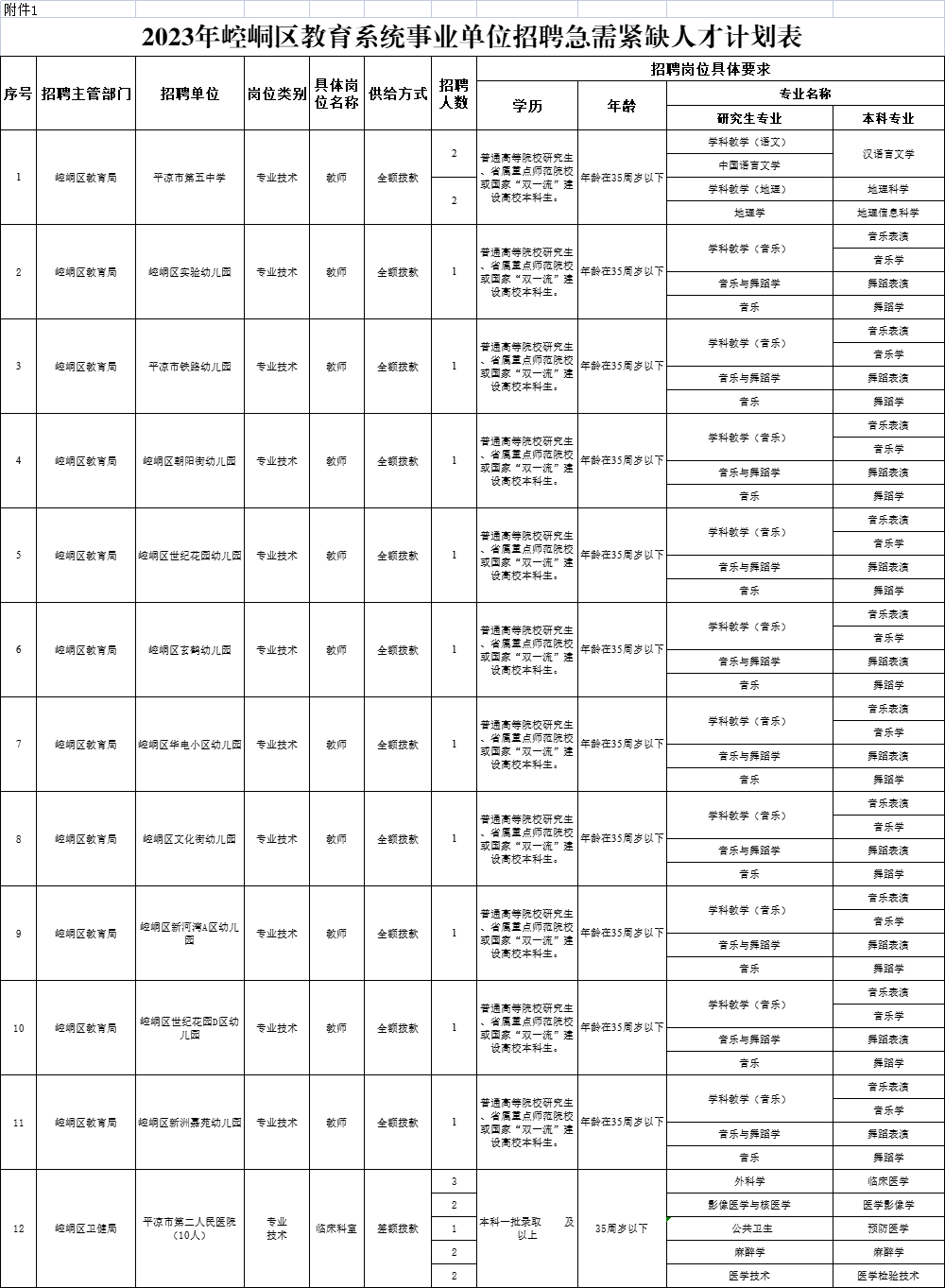 2023年崆峒區(qū)教育衛(wèi)健系統(tǒng)事業(yè)單位招聘急需緊缺人才公告
