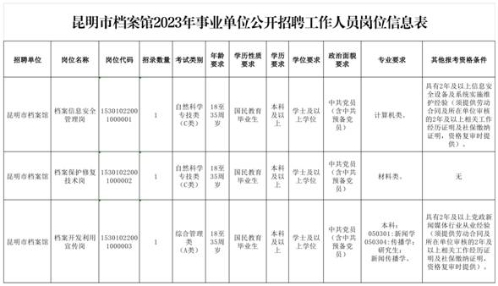 昆明市檔案館2023年公開招聘公告