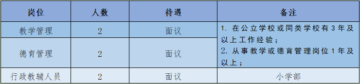 應(yīng)屆大學(xué)畢業(yè)生應(yīng)聘小學(xué)、初中教師年薪8萬(wàn)元(含五險(xiǎn)一金)起,有工作經(jīng)驗(yàn)的優(yōu)秀教師待遇面議。