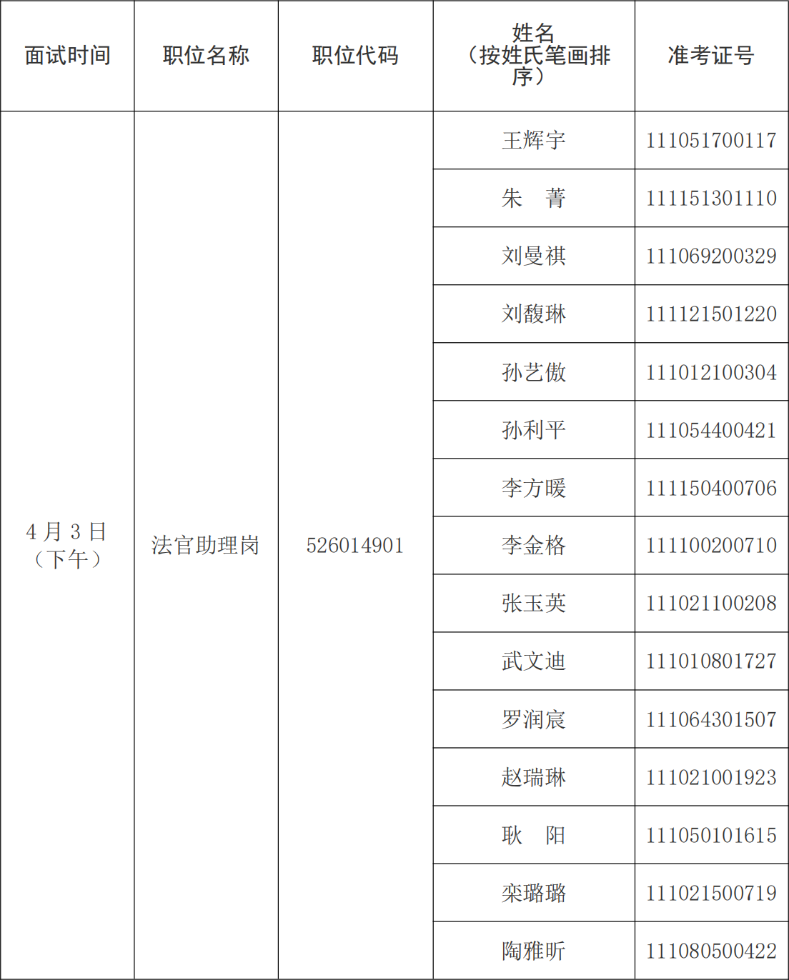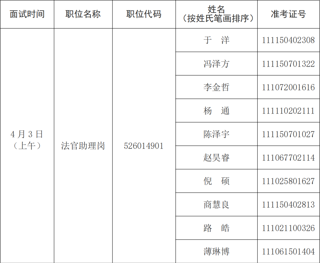 請考生按照面試時間安排,于本人面試當(dāng)天上午8:00或下午13:00前,到面試候考室北京市大興區(qū)人民法院C座三樓第二會議室報到,參加面試。需參加專業(yè)能力測試的考生,還應(yīng)在3月25日13:00前,到北京市大興區(qū)人民法院執(zhí)行指揮中心報到,參加專業(yè)能力測試。未按時報到的,視為自動放棄。