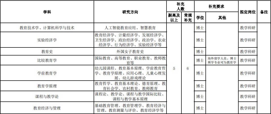 2. 常規(guī)補(bǔ)充(引進(jìn))教學(xué)科研人員補(bǔ)充計(jì)劃: