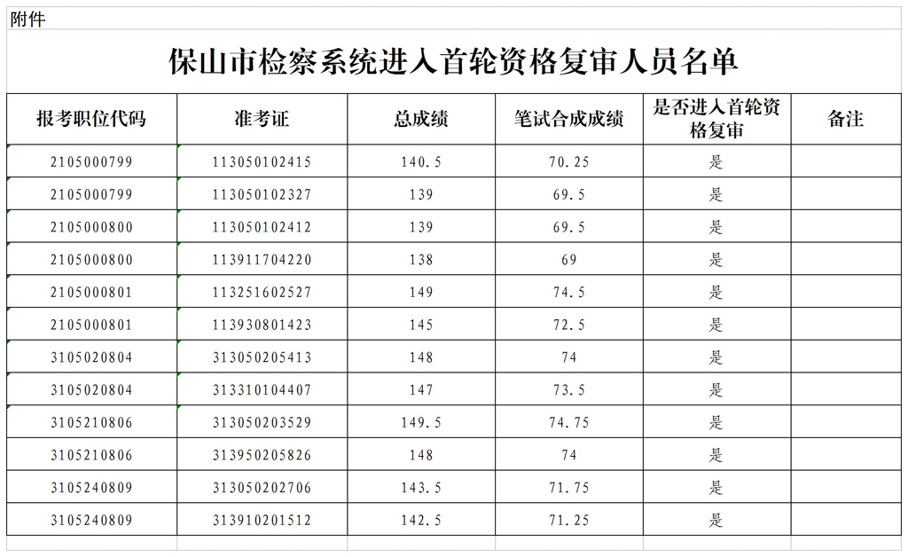 附件:保山市檢察系統(tǒng)進(jìn)入首輪資格復(fù)審人員名單
