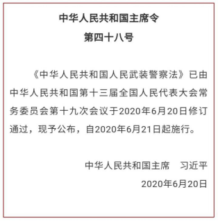 第四十八條 人民武裝警察部隊(duì)執(zhí)行防衛(wèi)作戰(zhàn)任務(wù),依照中央軍事委員會(huì)的命令執(zhí)行。