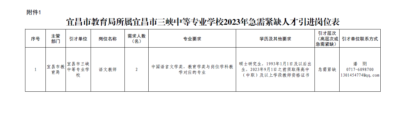 附件1. 宜昌市教育局所屬宜昌市三峽中等專業(yè)學(xué)校2023年急需緊缺人才引進(jìn)崗位表.pdf