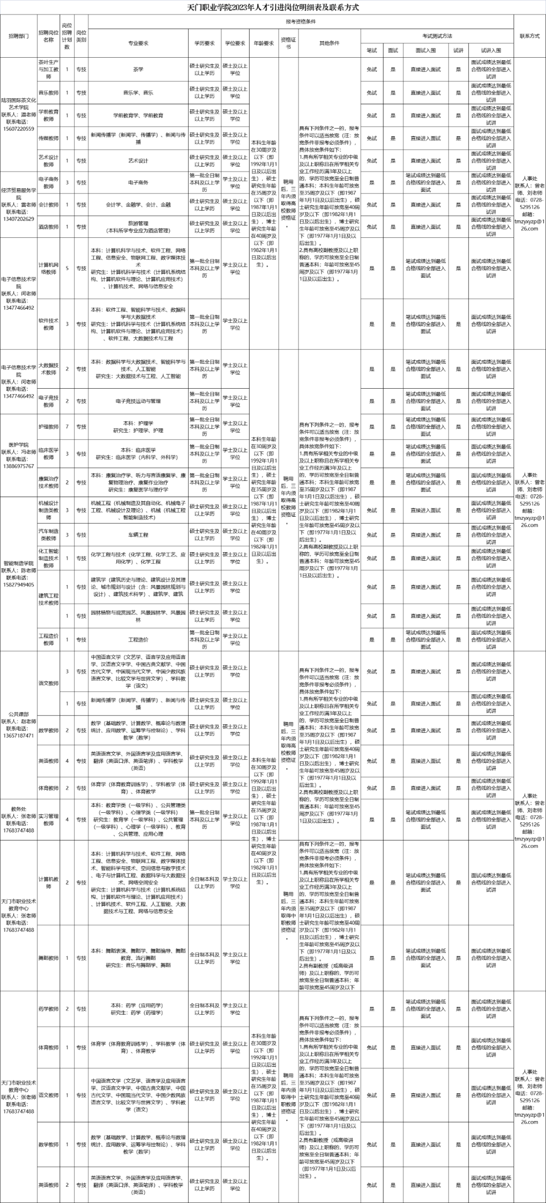 1.招聘崗位、招聘人數(shù)、專業(yè)要求、學(xué)歷層次及崗位相關(guān)要求詳見(jiàn)《天門(mén)職業(yè)學(xué)院2023年人才引進(jìn)崗位明細(xì)表及聯(lián)系方式》(附件1)。