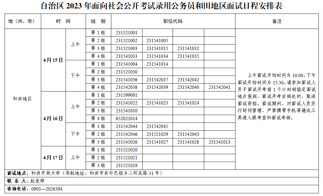 根據(jù)自治區(qū)2023年面向社會公開考試錄用公務員工作安排,現(xiàn)就和田地區(qū)面試工作有關事項公告如下: