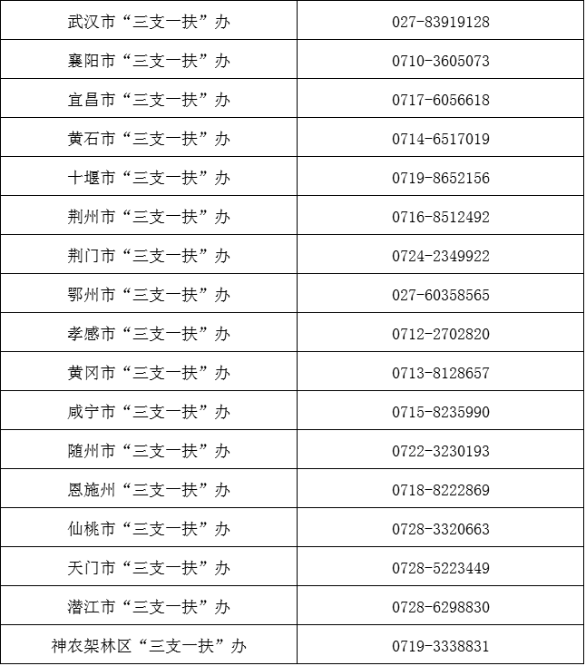 市州、直管市、林區(qū)“三支一扶”辦咨詢電話