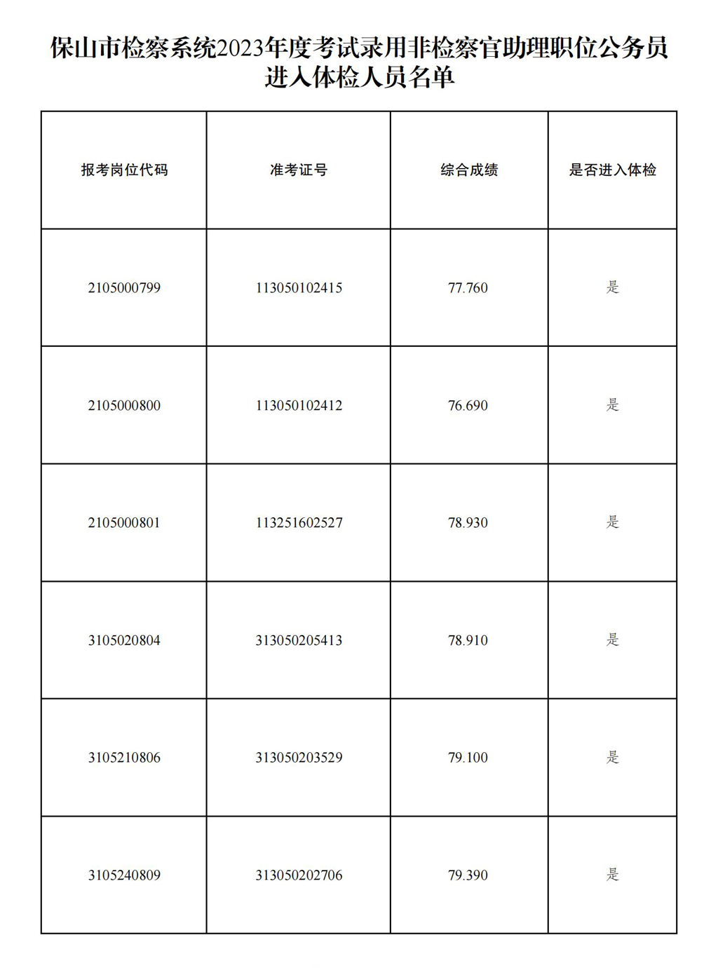 保山市檢察系統(tǒng)2023年度考試錄用非檢察官助理職位公務(wù)員體檢有關(guān)事項(xiàng)的通知