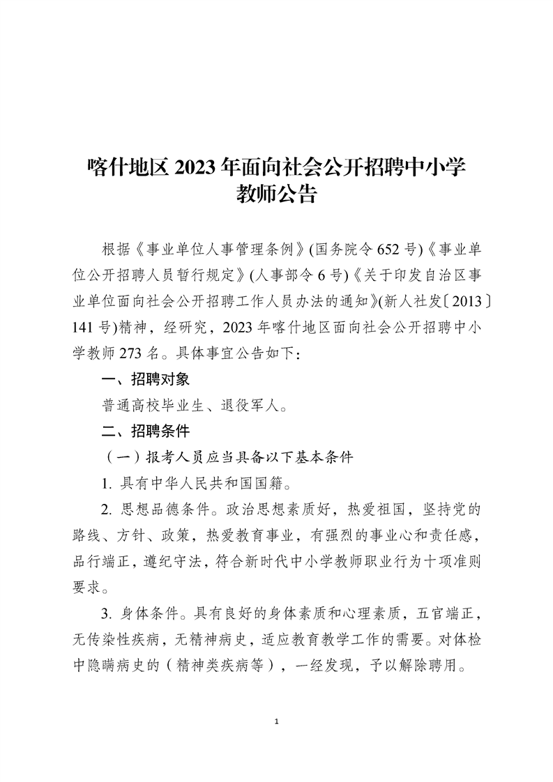 喀什地區(qū)2023年面向社會(huì)公開(kāi)招聘中小學(xué)教師公告
